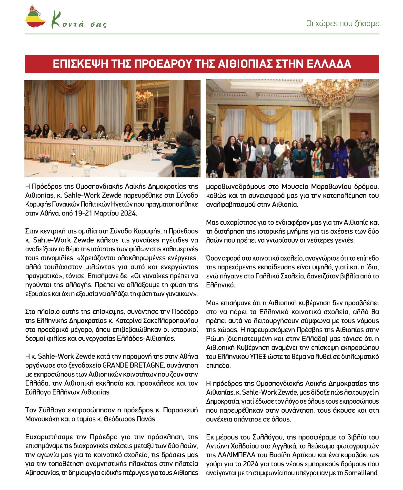 ΣΥΝΑΝΤΗΣΗ ΠΡΟΕΔΡΩΝ ΑΙΘΙΟΠΙΑΣ ΚΑΙ ΕΛΛΑΔΑΣ